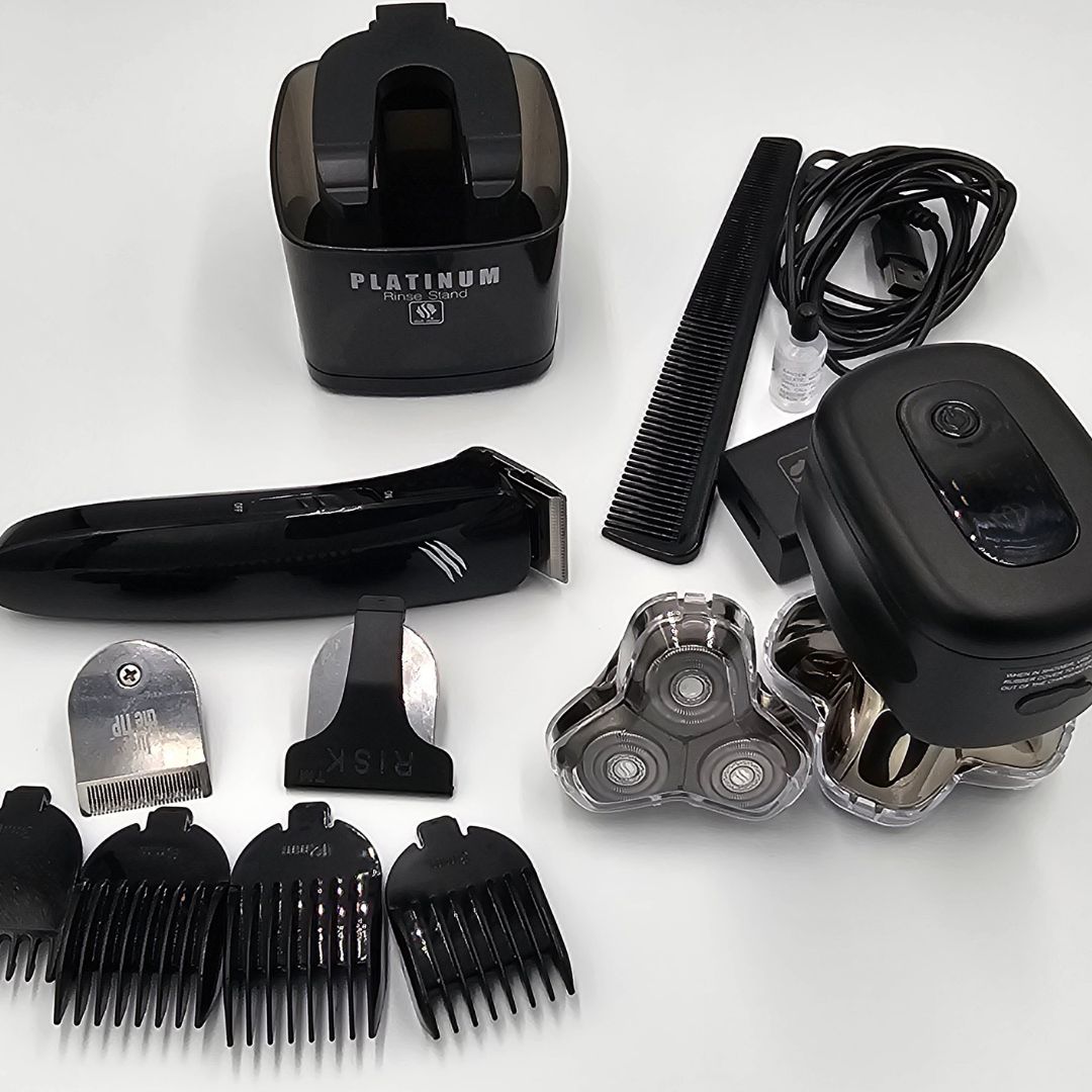 For everything beyond the shave, the Baby Beast 3SUM Trimmer elevates full-body grooming with its dedicated precision attachments, ensuring every edge, line, and detail is handled with confidence. Essential maintenance tools, including the Platinum Rinse Stand and complete charging setup, keep your routine seamless. And the entire system travels in the flex-cushioned Diamond Case, bringing a refined, ready-anywhere experience to your everyday grooming.